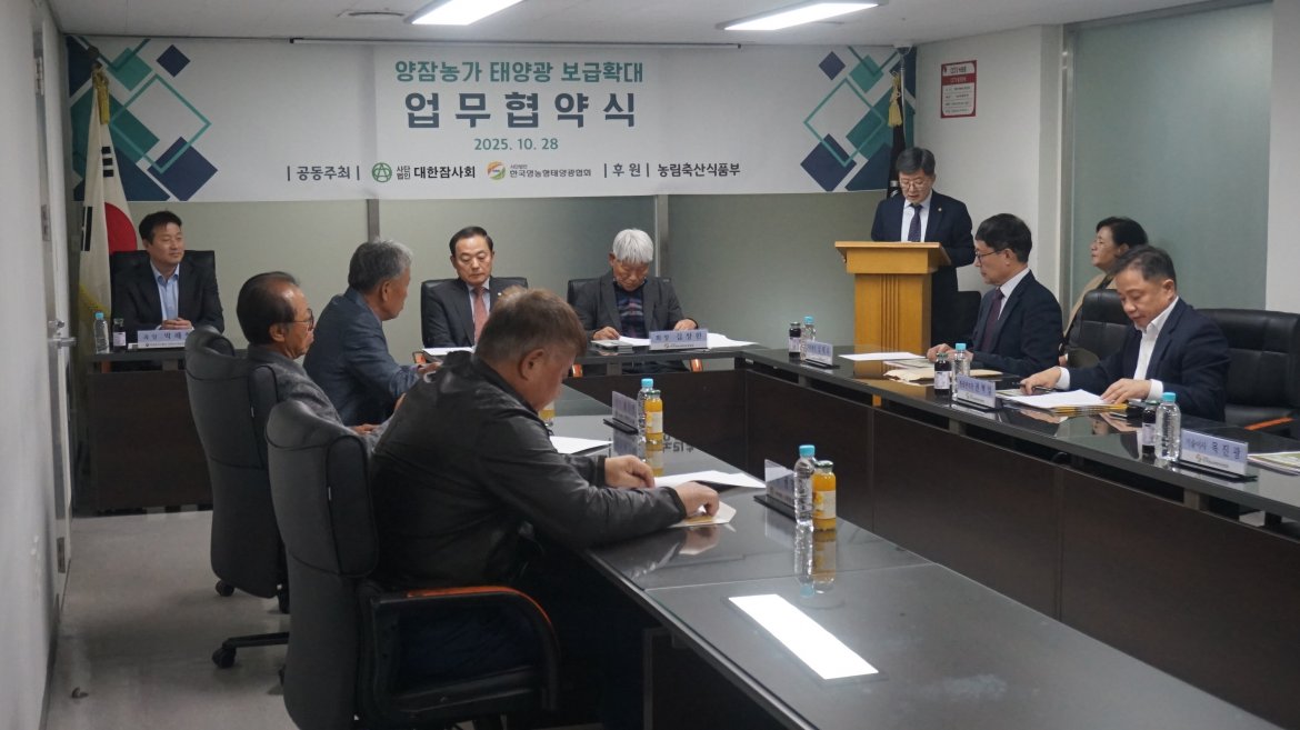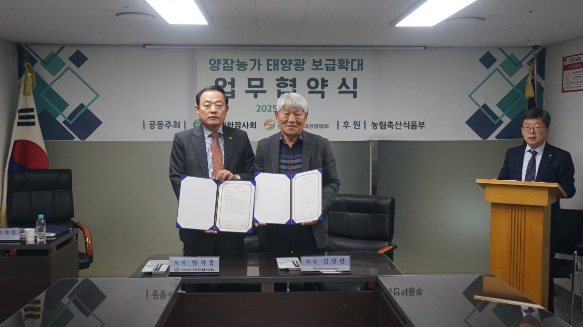 2025년 10월 28일 서울 잠사회관에서 대한잠사회와 한국영농형태양광협회간 양잠농가 태양광 보급 확대를 위한 업무협약식이 진행되었다. 이번 업무협약식은 농림축산식품부 후원으로 진행되어 농림축산식품부 농촌탄소중립정책과 박해청 과장이 참석하였고 대한잠사회 임석종 회장, 한국양잠연합회 이순준 회장, 한국잠종협회 송진영 회장, 생사수출입조합 권영기 이사와 한국영농형태양광협회 김창한 회장, 남재우 사무총장, 목진광 기술이사가 참석하였다. 협약식은 임석종 회장과 김창한 회장이 협약서에 서명하며 진행되었다.